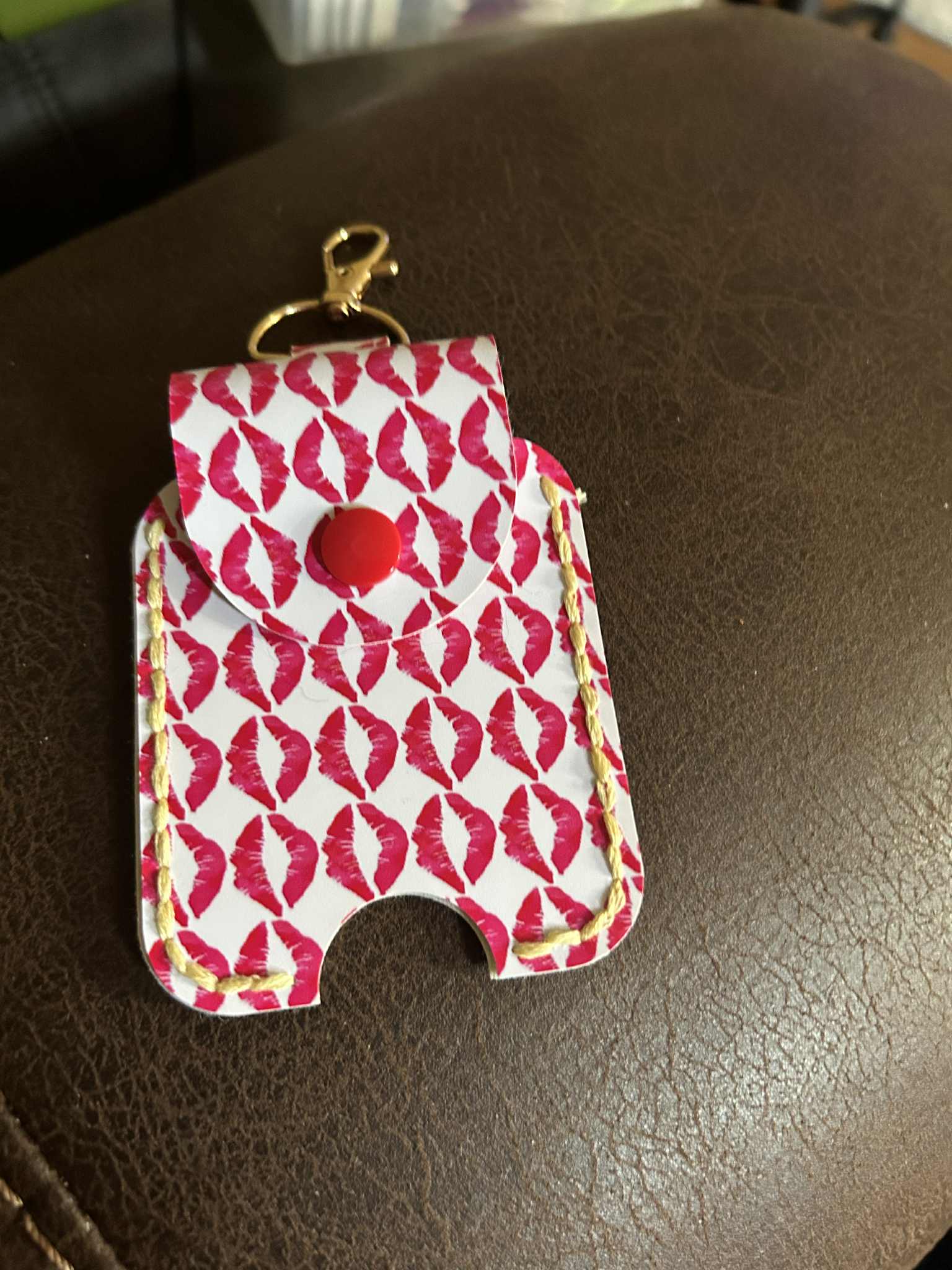 Keep your hand sanitizer close and stylish with this scalloped lips 2oz holder crafted from durable faux leather. Its chic design not only protects your sanitizer bottle but also adds a fashionable touch to your everyday essentials. Lightweight and compact, it easily attaches to bags or keys, ensuring your sanitizer is always within reach. Perfect for on-the-go hygiene without sacrificing style.