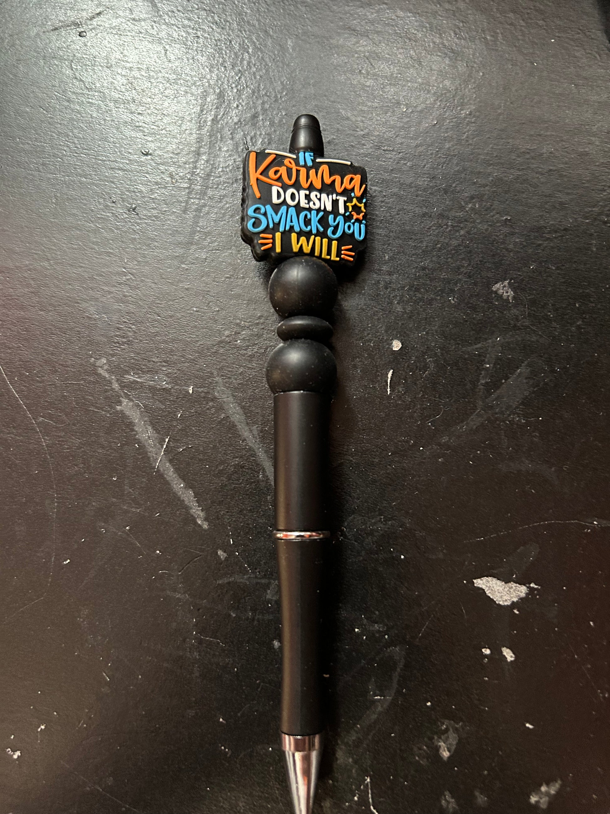 Make a bold statement with our “If Karma Doesn’t Slap You, I Will” Beaded Pen 😏✨ Perfect for those who love a little sass with their stationery, this pen brings personality and attitude to every note you write.